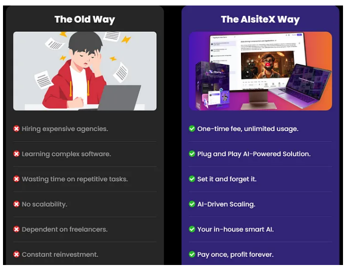 Whether you’re a coach, consultant, agency, or hobbyist, AIsiteX promises fast results, zero tech overwhelm, and no recurring fees — you pay once and use it forever.